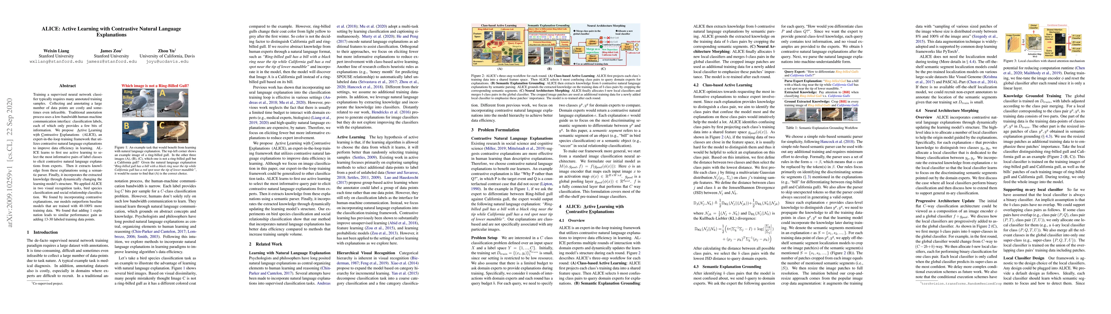 ALICE is an active learning framework that leverages contrastive natural language explanations to enhance data efficiency. It selects informative label pairs to elicit detailed explanations from experts, extracts knowledge, and dynamically adjusts the model structure, achieving better performance with fewer labeled data compared to traditional methods.