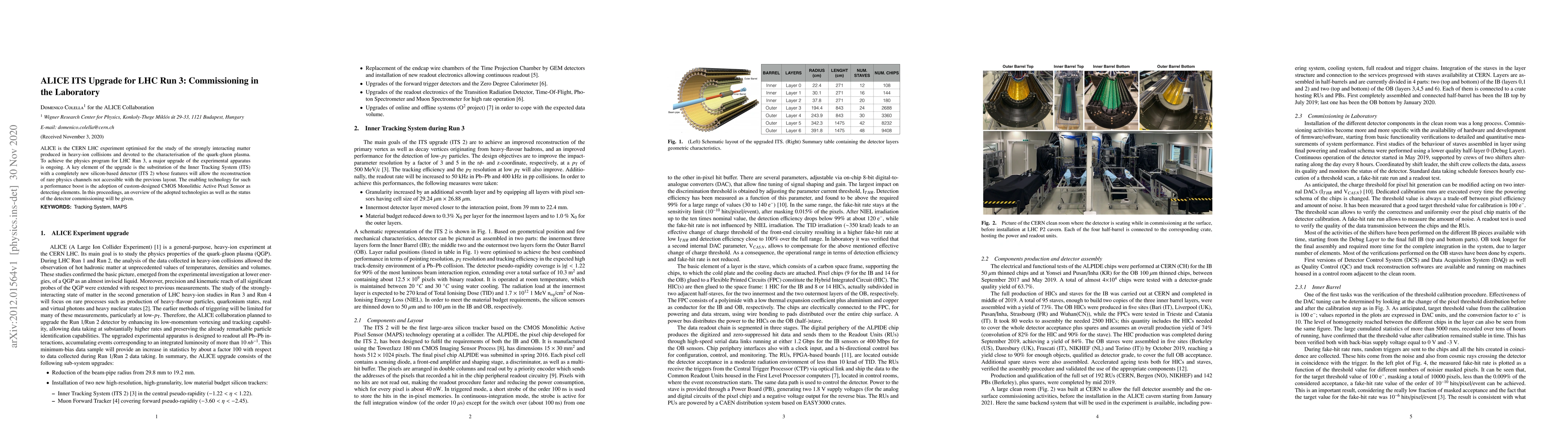 The ALICE experiment at CERN is undergoing a major upgrade for LHC Run 3, focusing on replacing the Inner Tracking System (ITS) with a new silicon-based ITS 2. This upgrade employs custom CMOS Monolithic Active Pixel Sensors to enhance the detection of rare physics channels, and this paper provides an overview of the new technologies and the current status of the commissioning process.