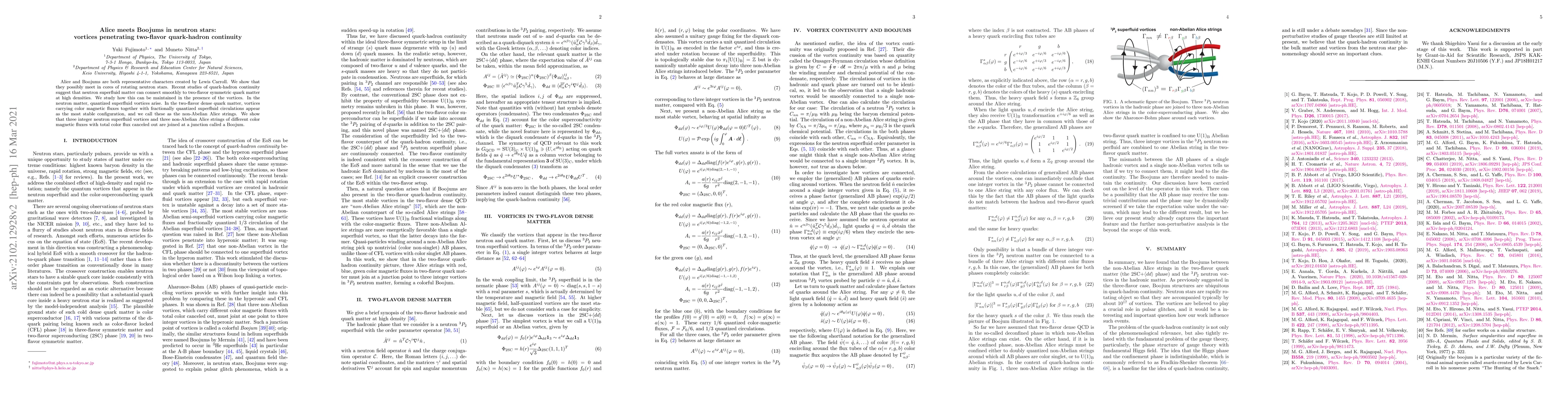 This paper explores the potential meeting of "Alice" and "Boojums" in neutron stars, where "Alice" represents vortices in neutron superfluid matter and "Boojums" are junctions connecting these vortices. It investigates how two-flavor quark-hadron continuity can persist amidst vortices, introducing non-Abelian Alice strings in dense quark matter and demonstrating their junction with neutron vortices.