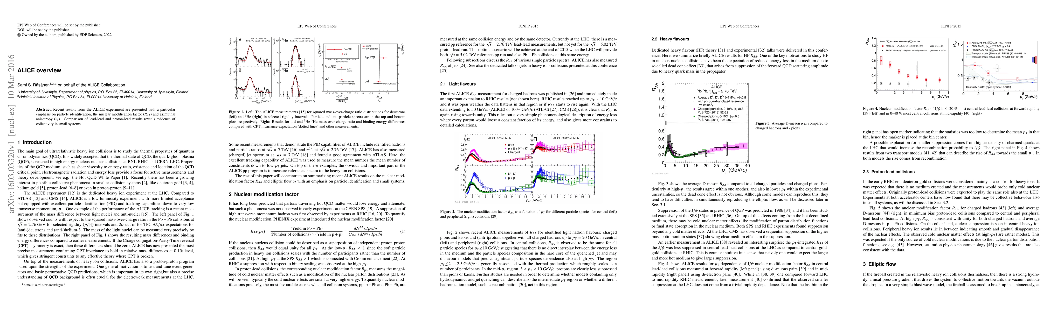 **Summary:** The ALICE experiment reports recent findings on particle identification, nuclear modification factor, and azimuthal anisotropy, showing evidence of collectivity in small systems through comparisons between lead-lead and proton-lead collisions.