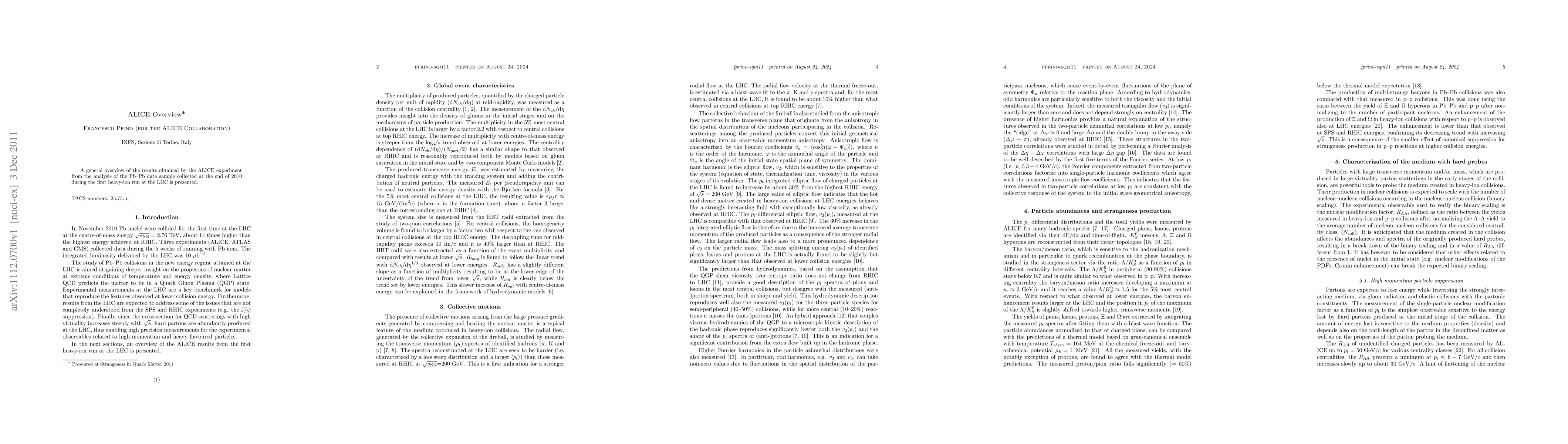 Summary: The ALICE experiment provides an overview of its findings from analyzing lead-lead collision data collected in 2010 at the LHC, revealing significant insights into heavy-ion interactions and the properties of the quark-gluon plasma.