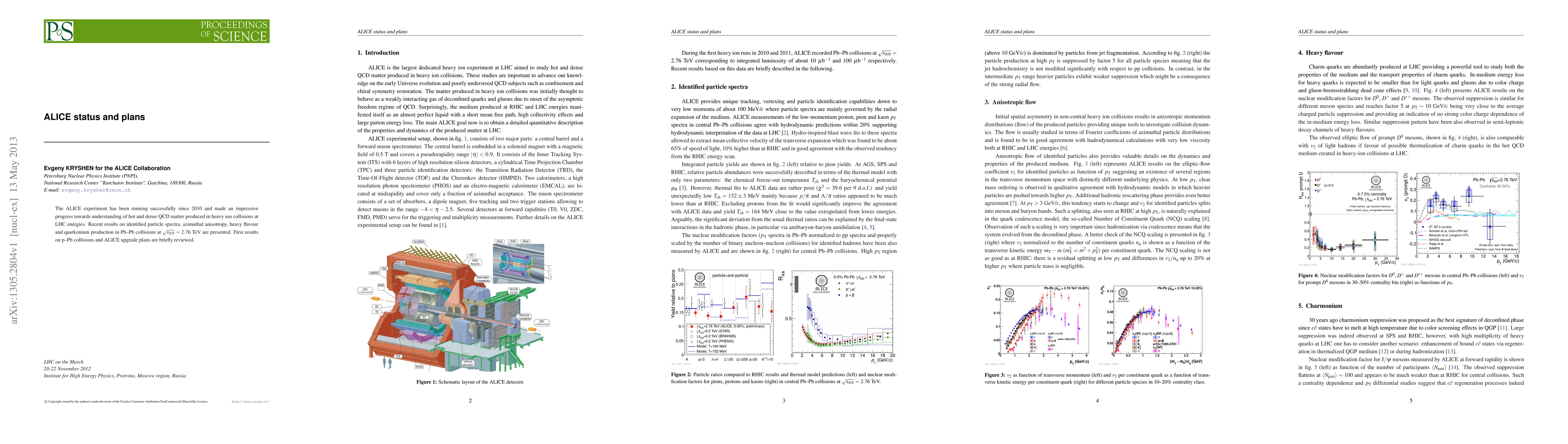 The ALICE experiment has been running successfully since 2010 and made an impressive progress towards understanding of hot and dense QCD matter produced in heavy ion collisions at LHC energies. Recent results on identified particle spectra, azimuthal anisotropy, heavy flavour and quarkonium production in Pb-Pb collisions at sqrt(s_NN) = 2.76 TeV are presented. First results on p-Pb collisions and ALICE upgrade plans are briefly reviewed.