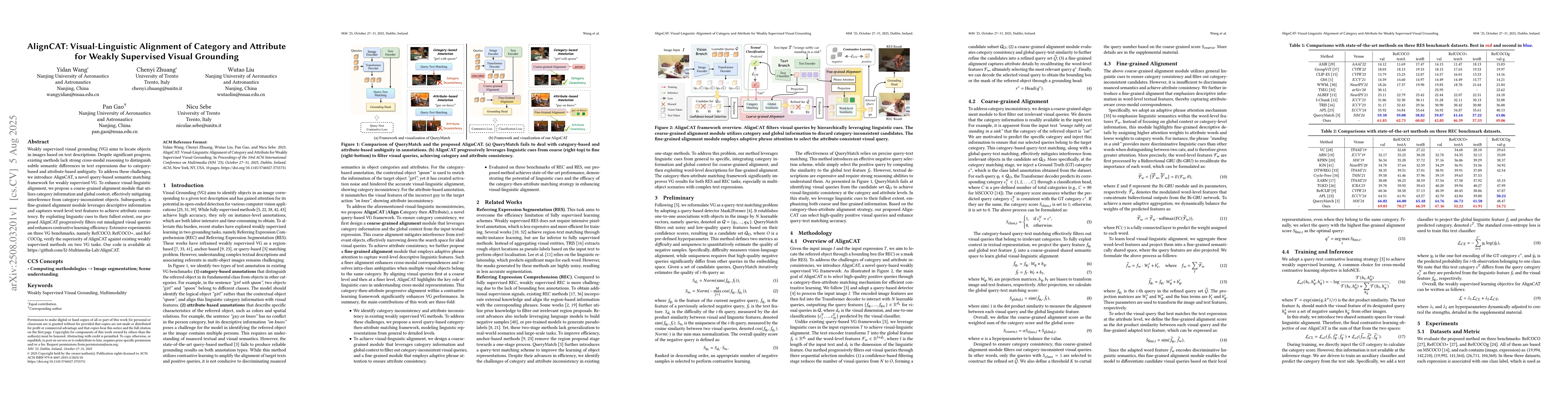 Weakly supervised visual grounding (VG) aims to locate objects in images based on text descriptions. Despite significant progress, existing methods lack strong cross-modal reasoning to distinguish subtle semantic differences in text expressions due to category-based and attribute-based ambiguity. To address these challenges, we introduce AlignCAT, a novel query-based semantic matching framework for weakly supervised VG. To enhance visual-linguistic alignment, we propose a coarse-grained alignment module that utilizes category information and global context, effectively mitigating interference from category-inconsistent objects. Subsequently, a fine-grained alignment module leverages descriptive information and captures word-level text features to achieve attribute consistency. By exploiting linguistic cues to their fullest extent, our proposed AlignCAT progressively filters out misaligned visual queries and enhances contrastive learning efficiency. Extensive experiments on three VG benchmarks, namely RefCOCO, RefCOCO+, and RefCOCOg, verify the superiority of AlignCAT against existing weakly supervised methods on two VG tasks. Our code is available at: https://github.com/I2-Multimedia-Lab/AlignCAT.