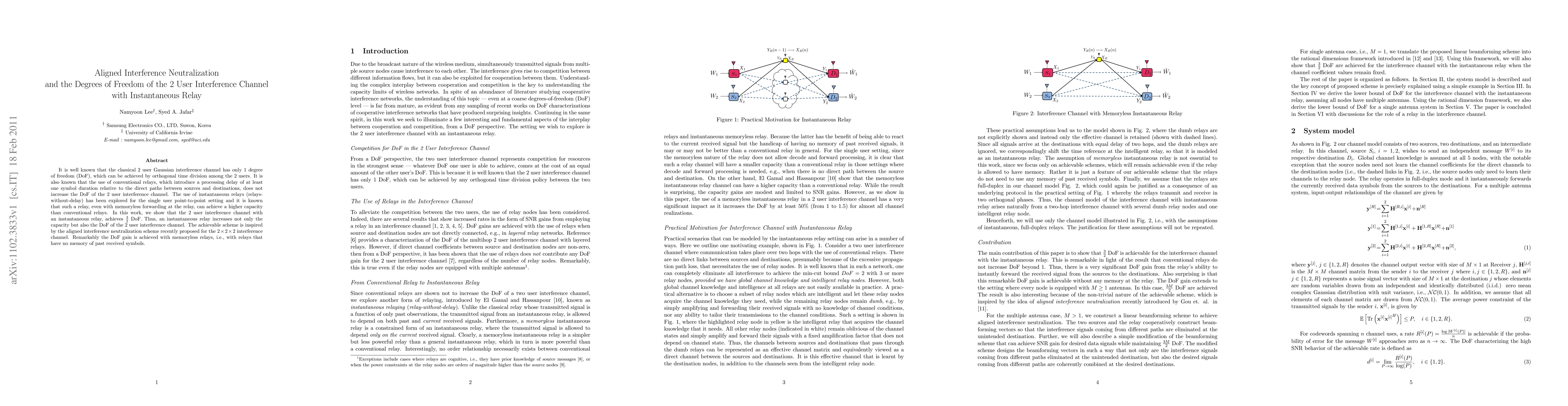 This paper demonstrates that an instantaneous relay can increase the degrees of freedom (DoF) of a 2-user Gaussian interference channel from 1 to 3/2, using an aligned interference neutralization scheme. This DoF gain is achieved even with memoryless relays, which do not retain information from past received symbols.