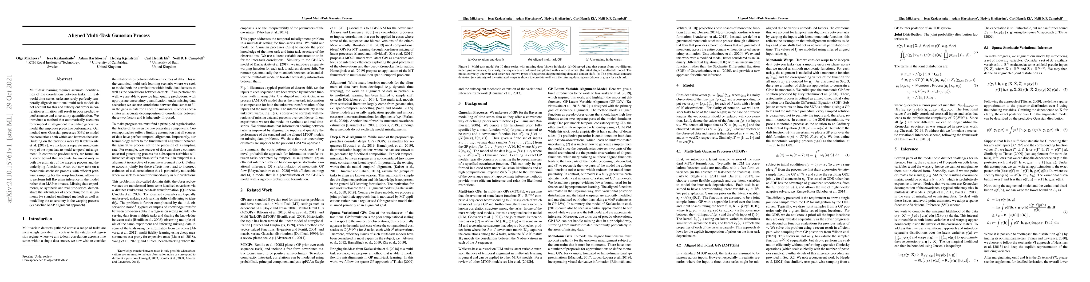 This paper proposes a new method to account for temporal misalignment in multi-task learning, using Gaussian processes to model correlations between tasks and incorporating uncertainty in the warping process. The approach improves predictive performance and uncertainty quantification compared to traditional methods.