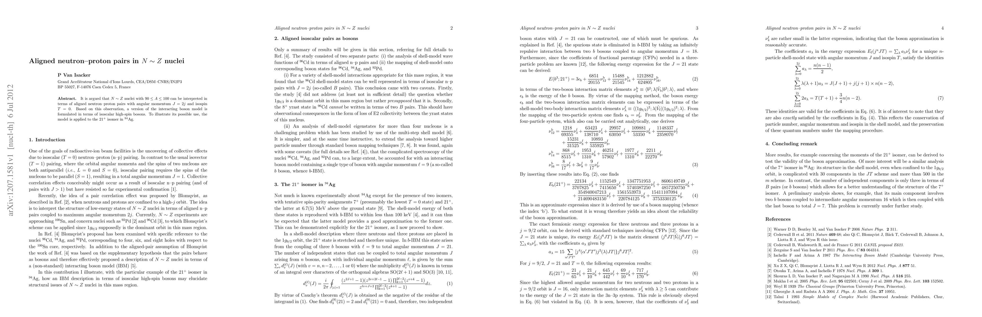 This paper proposes that $N\sim Z$ nuclei with atomic mass 90-100 can be understood as having aligned neutron-proton pairs with angular momentum $J=2j$ and isospin T=0. It introduces an interacting boson model based on these pairs and demonstrates its application to the $21^+$ isomer in $^{94}$Ag.