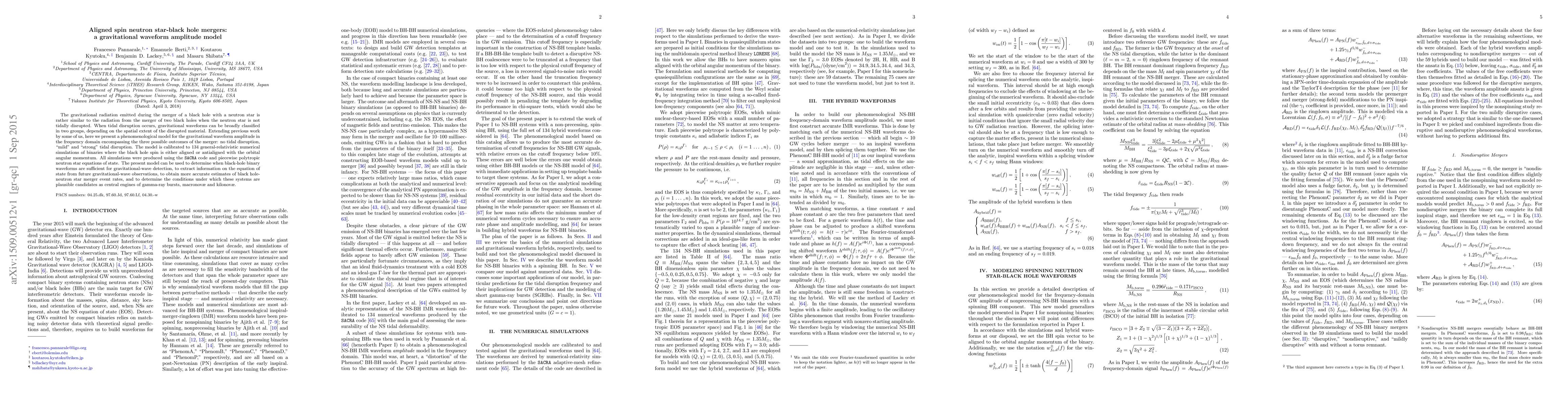 This paper presents a phenomenological model for gravitational waveform amplitude during neutron star-black hole mergers, calibrated to 134 numerical simulations. The model covers three merger outcomes: no disruption, mild, and strong tidal disruption, aiding in detecting gravitational waves and extracting neutron star equation of state information.