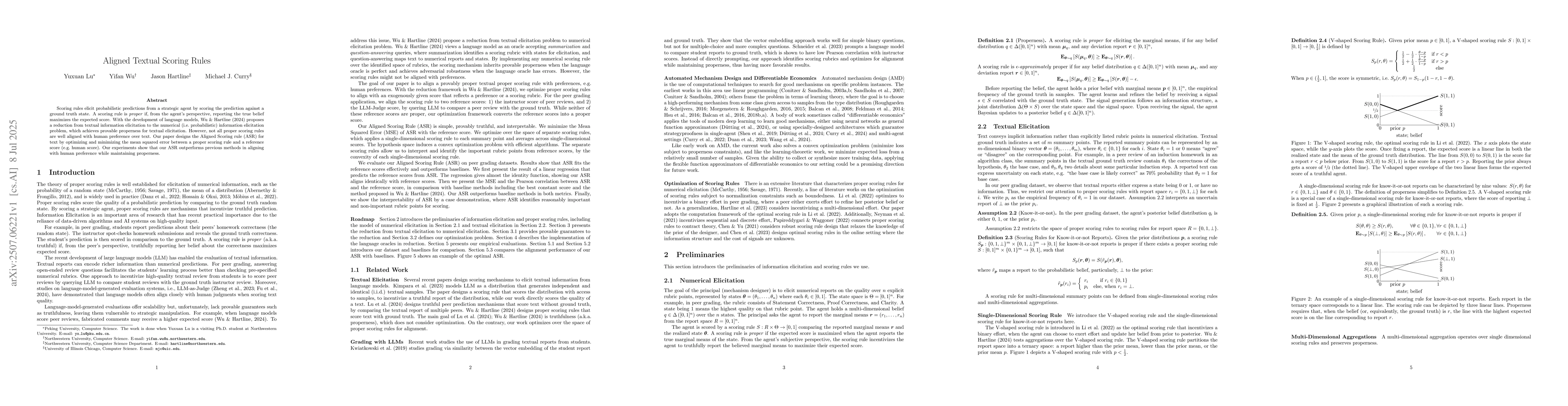 Scoring rules elicit probabilistic predictions from a strategic agent by scoring the prediction against a ground truth state. A scoring rule is proper if, from the agent's perspective, reporting the true belief maximizes the expected score. With the development of language models, Wu and Hartline (2024) proposes a reduction from textual information elicitation to the numerical (i.e. probabilistic) information elicitation problem, which achieves provable properness for textual elicitation. However, not all proper scoring rules are well aligned with human preference over text. Our paper designs the Aligned Scoring rule (ASR) for text by optimizing and minimizing the mean squared error between a proper scoring rule and a reference score (e.g. human score). Our experiments show that our ASR outperforms previous methods in aligning with human preference while maintaining properness.