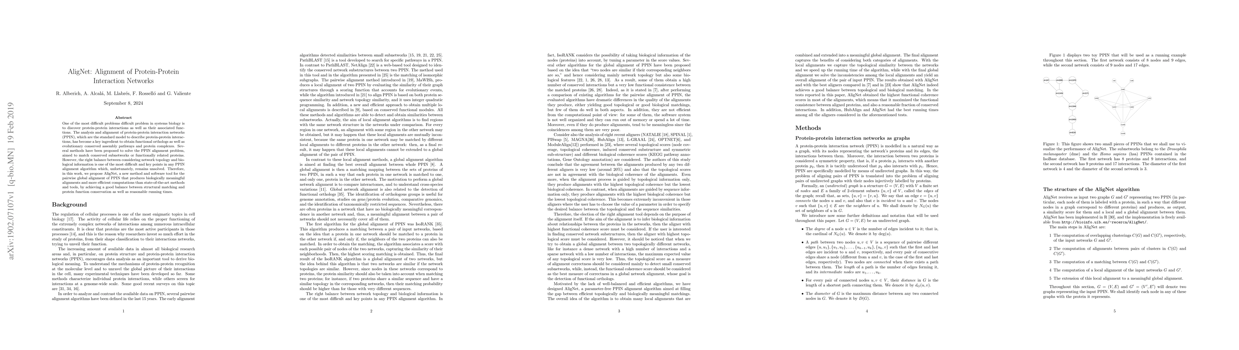 AligNet is a novel method for aligning protein-protein interaction networks (PPIN) that balances network topology with protein function conservation, achieving biologically meaningful results and efficient computations compared to existing tools. It aims to discover functional orthologs and evolutionary conserved pathways.