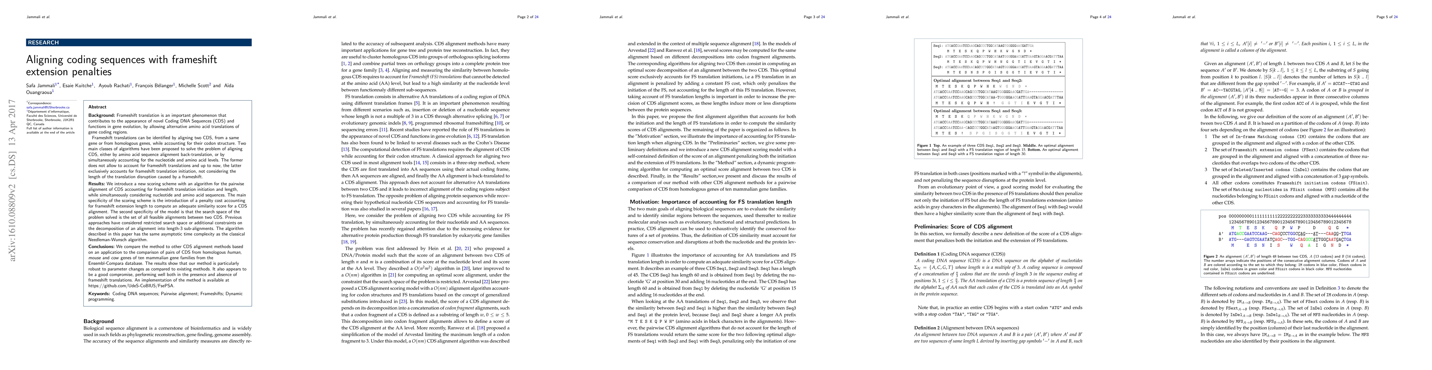 A new method for aligning coding sequences that accounts for frameshift translation initiation and length is introduced, showing robust performance in comparing gene families from human, mouse, and cow genes.