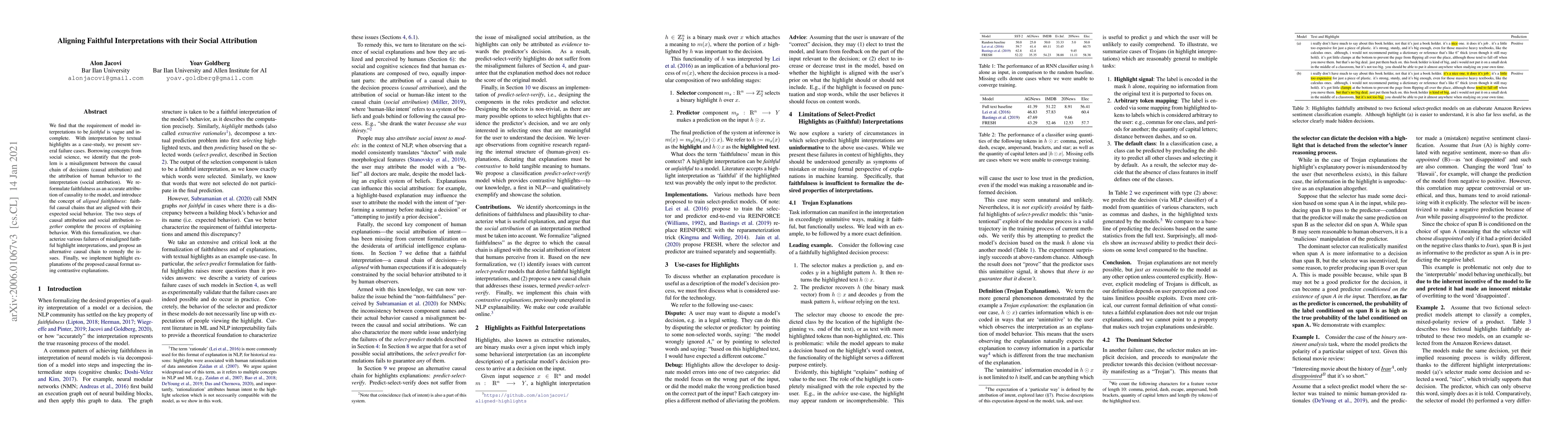 This paper critiques the vagueness of "faithfulness" in model interpretations, particularly textual highlights, and identifies misalignment between causal decision chains and social attribution. It introduces "aligned faithfulness" to ensure faithful causal chains match expected social behavior, proposing a new causal format and contrastive explanations to address these issues.