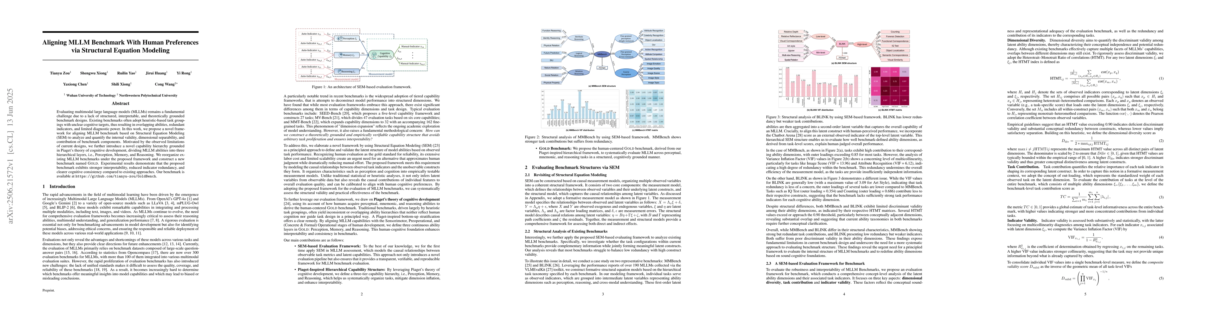 Evaluating multimodal large language models (MLLMs) remains a fundamental challenge due to a lack of structured, interpretable, and theoretically grounded benchmark designs. Existing benchmarks often adopt heuristic-based task groupings with unclear cognitive targets, thus resulting in overlapping abilities, redundant indicators, and limited diagnostic power. In this work, we propose a novel framework for aligning MLLM benchmark based on Structural Equation Modeling (SEM) to analyze and quantify the internal validity, dimensional separability, and contribution of benchmark components. Motivated by the observed limitations of current designs, we further introduce a novel capability hierarchy grounded in Piagets theory of cognitive development, dividing MLLM abilities into three hierarchical layers, i.e., Perception, Memory, and Reasoning. We reorganize existing MLLM benchmarks under the proposed framework and construct a new benchmark named Gold. Experimental results demonstrate that the proposed benchmark exhibits stronger interpretability, reduced indicator redundancy, and clearer cognitive consistency compared to existing approaches.