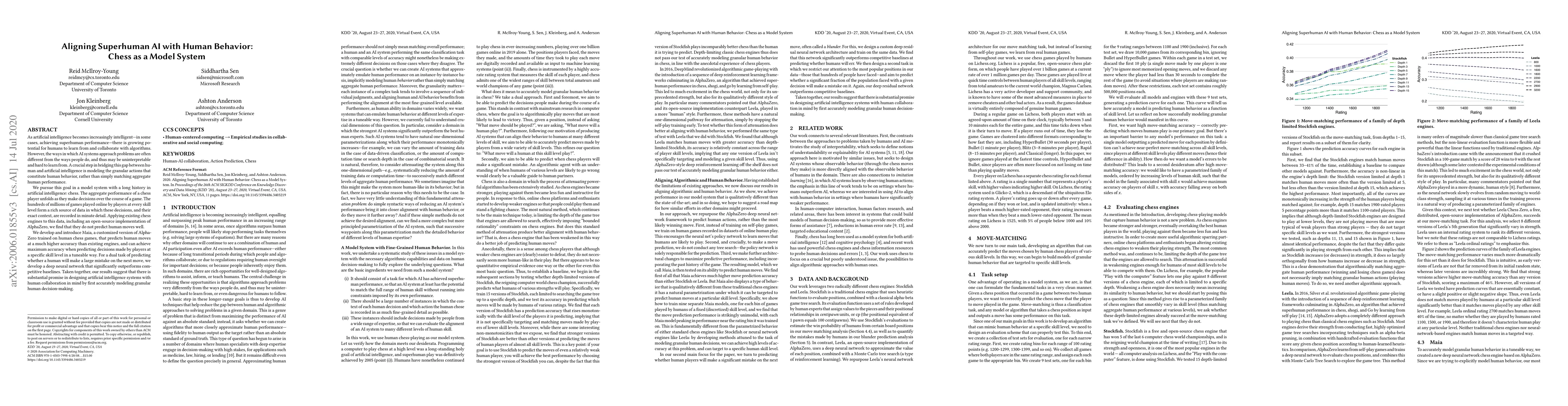 This paper explores the development of Maia, a customized version of AlphaZero trained on human chess games, to better predict human moves compared to existing chess engines. The study highlights the potential of designing AI systems that accurately model human decision-making to facilitate better human-AI collaboration.