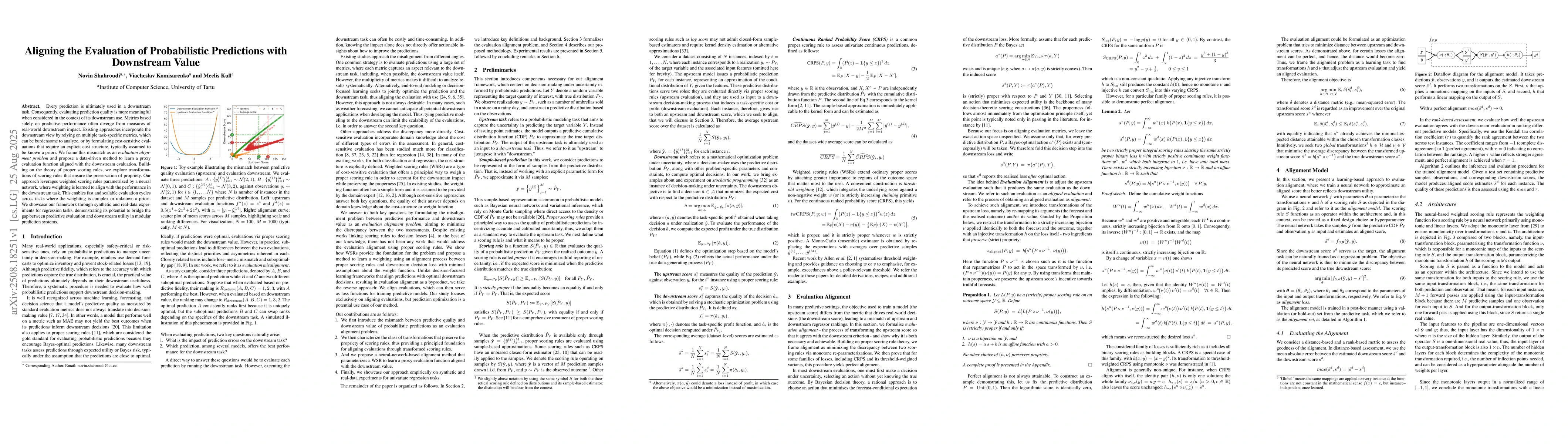 Every prediction is ultimately used in a downstream task. Consequently, evaluating prediction quality is more meaningful when considered in the context of its downstream use. Metrics based solely on predictive performance often diverge from measures of real-world downstream impact. Existing approaches incorporate the downstream view by relying on multiple task-specific metrics, which can be burdensome to analyze, or by formulating cost-sensitive evaluations that require an explicit cost structure, typically assumed to be known a priori. We frame this mismatch as an evaluation alignment problem and propose a data-driven method to learn a proxy evaluation function aligned with the downstream evaluation. Building on the theory of proper scoring rules, we explore transformations of scoring rules that ensure the preservation of propriety. Our approach leverages weighted scoring rules parametrized by a neural network, where weighting is learned to align with the performance in the downstream task. This enables fast and scalable evaluation cycles across tasks where the weighting is complex or unknown a priori. We showcase our framework through synthetic and real-data experiments for regression tasks, demonstrating its potential to bridge the gap between predictive evaluation and downstream utility in modular prediction systems.