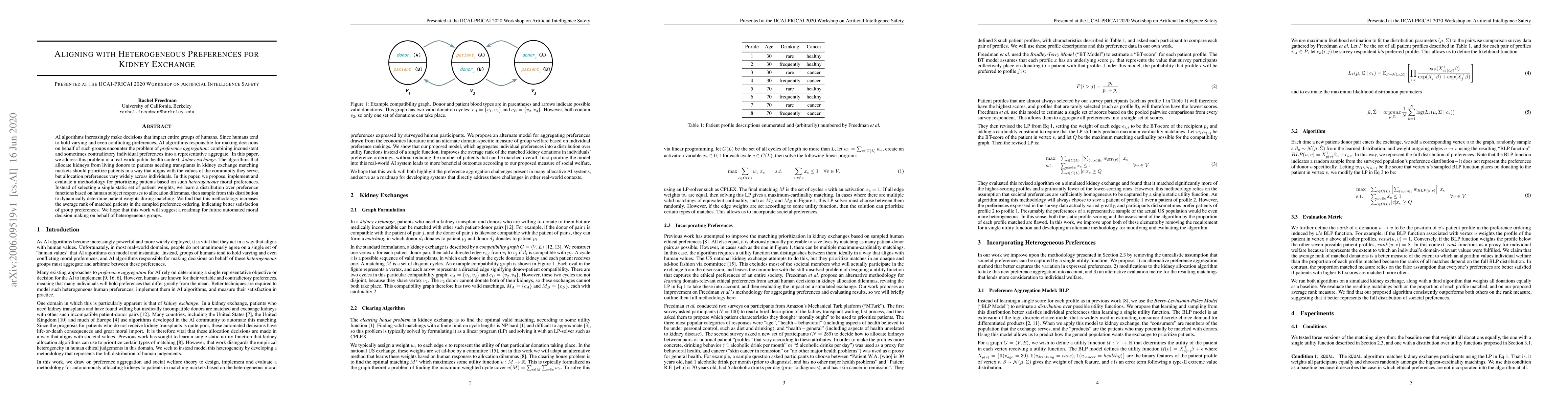 AI algorithms increasingly make decisions that impact entire groups of humans. Since humans tend to hold varying and even conflicting preferences, AI algorithms responsible for making decisions on behalf of such groups encounter the problem of preference aggregation: combining inconsistent and sometimes contradictory individual preferences into a representative aggregate. In this paper, we address this problem in a real-world public health context: kidney exchange. The algorithms that allocate kidneys from living donors to patients needing transplants in kidney exchange matching markets should prioritize patients in a way that aligns with the values of the community they serve, but allocation preferences vary widely across individuals. In this paper, we propose, implement and evaluate a methodology for prioritizing patients based on such heterogeneous moral preferences. Instead of selecting a single static set of patient weights, we learn a distribution over preference functions based on human subject responses to allocation dilemmas, then sample from this distribution to dynamically determine patient weights during matching. We find that this methodology increases the average rank of matched patients in the sampled preference ordering, indicating better satisfaction of group preferences. We hope that this work will suggest a roadmap for future automated moral decision making on behalf of heterogeneous groups.