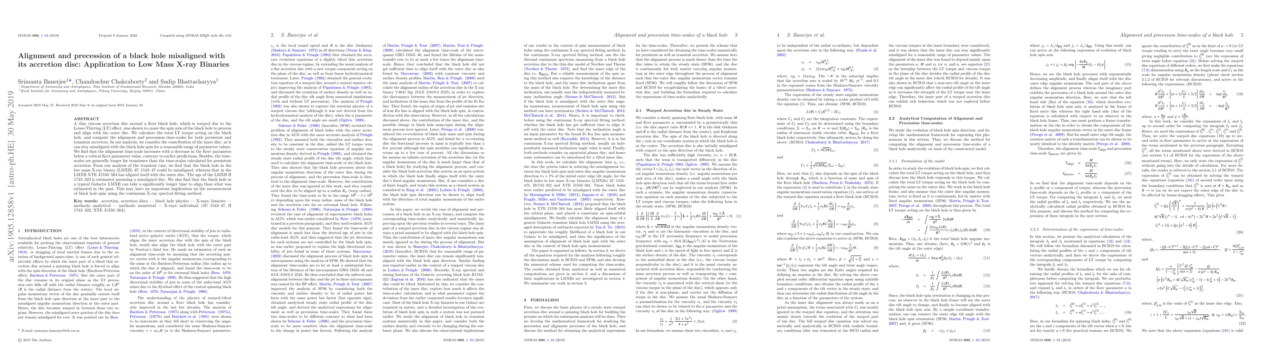 This paper investigates the alignment and precession of a misaligned black hole in low mass X-ray binaries, finding that the alignment time-scale increases with lower Kerr parameters and is generally longer for transient compared to persistent accretion. It suggests that black holes in some LMXBs may remain misaligned longer than previously thought, impacting spin measurement methods.