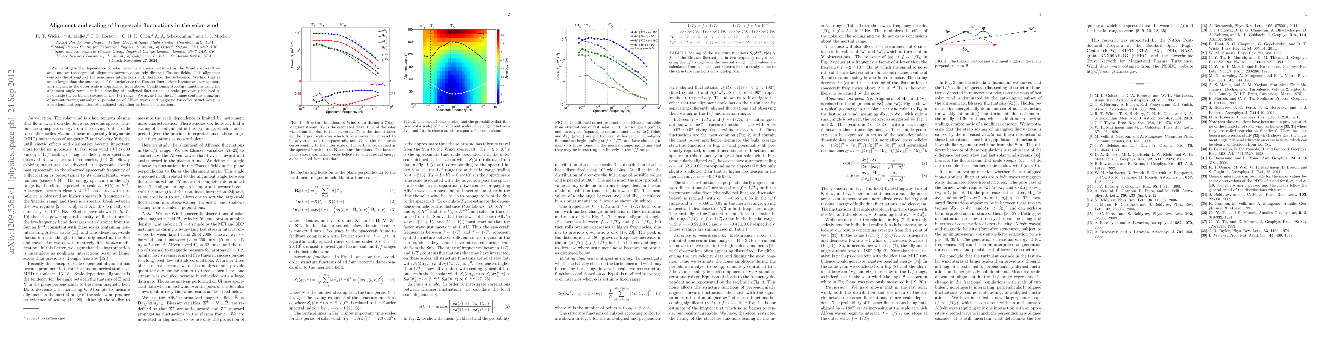 Research reveals that solar wind fluctuations align differently based on scale, with larger scales showing less alignment as they approach the outer edge of turbulence, and identifies a previously unknown '1/f' range caused by unaligned turbulent fluctuations.