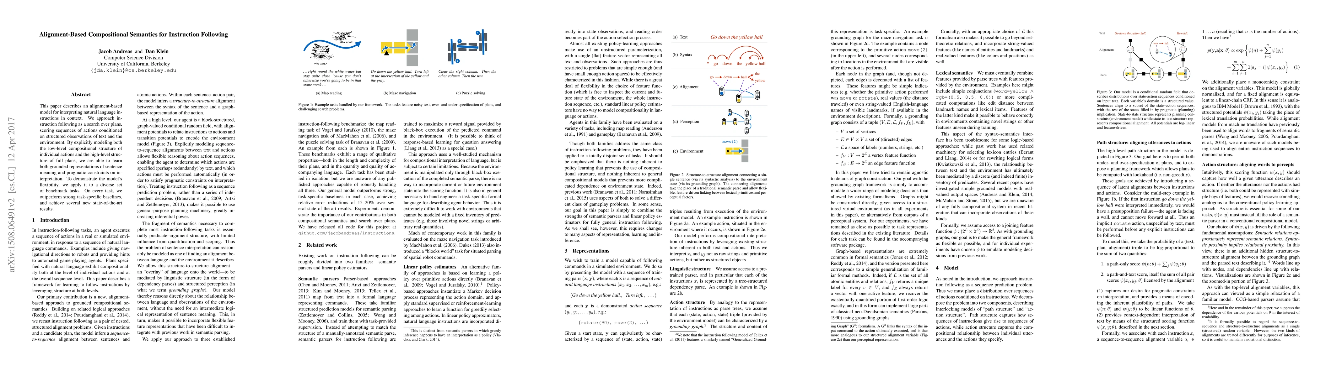 This paper proposes an alignment-based model for understanding natural language instructions, outperforming strong baselines on diverse tasks and achieving state-of-the-art results.