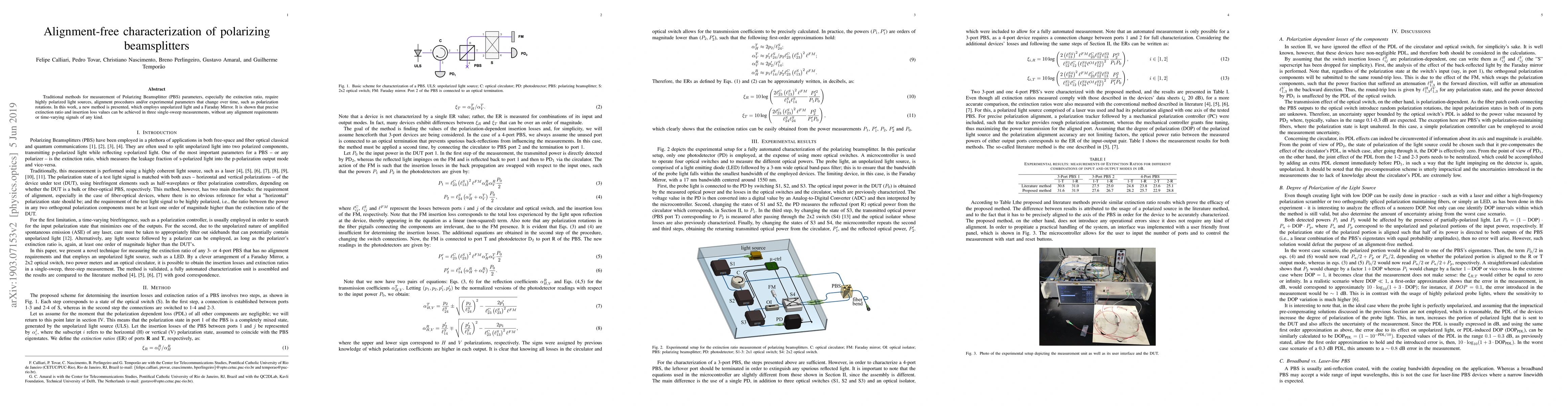 Traditional methods for measurement of Polarizing Beamsplitter (PBS) parameters, especially the extinction ratio, require highly polarized light sources, alignment procedures and/or experimental parameters that change over time, such as polarization rotations. In this work, a new method is presented, which employs unpolarized light and a Faraday Mirror. It is shown that precise extinction ratio and insertion loss values can be achieved in three single-sweep measurements, without any alignment requirements or time-varying signals of any kind.