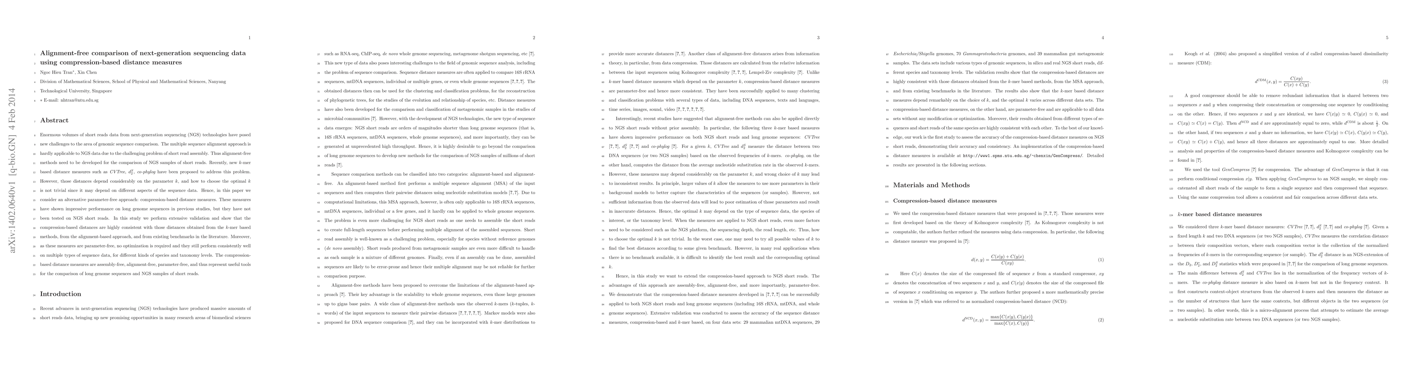 Researchers developed a new approach for comparing next-generation sequencing data using compression-based distance measures, which outperform existing methods and offer advantages like parameter-free optimization and assembly-free alignment.