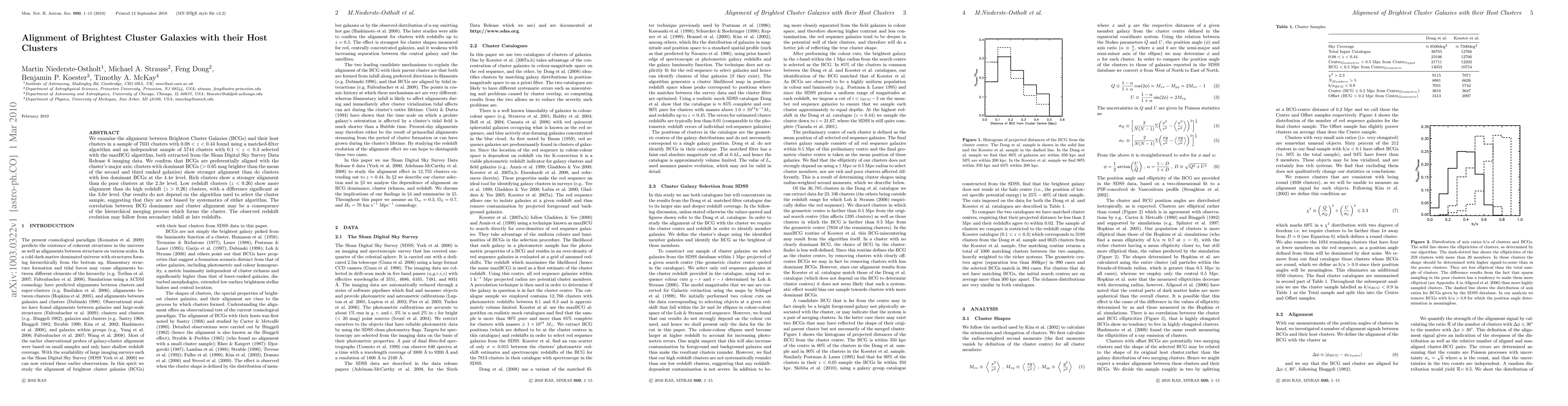 We examine the alignment between Brightest Cluster Galaxies (BCGs) and their