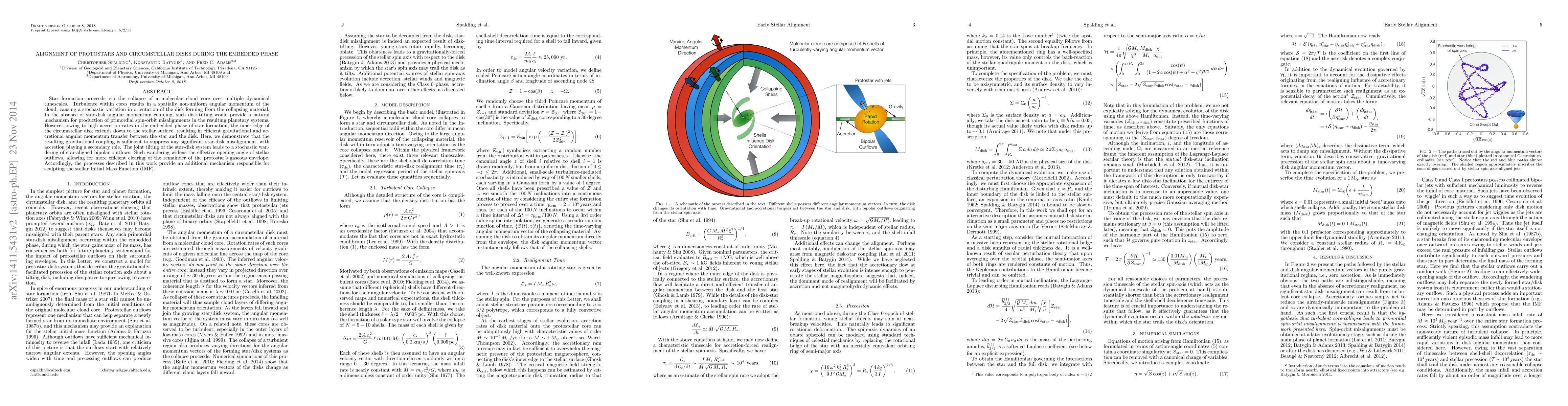 Star formation proceeds via the collapse of a molecular cloud core over multiple dynamical timescales. Turbulence within cores results in a spatially non-uniform angular momentum of the cloud, causing a stochastic variation in orientation of the disk forming from the collapsing material. In the absence of star-disk angular momentum coupling, such disk-tilting would provide a natural mechanism for production of primordial spin-orbit misalignments in the resulting planetary systems. However, owing to high accretion rates in the embedded phase of star formation, the inner edge of the circumstellar disk extends down to the stellar surface, resulting in efficient gravitational and accretional angular momentum transfer between the star and the disk. Here, we demonstrate that the resulting gravitational coupling is sufficient to suppress any significant star-disk misalignment, with accretion playing a secondary role. The joint tilting of the star-disk system leads to a stochastic wandering of star-aligned bipolar outflows. Such wandering widens the effective opening angle of stellar outflows, allowing for more efficient clearing of the remainder of the protostar's gaseous envelope. Accordingly, the processes described in this work provide an additional mechanism responsible for sculpting the stellar Initial Mass Function (IMF).