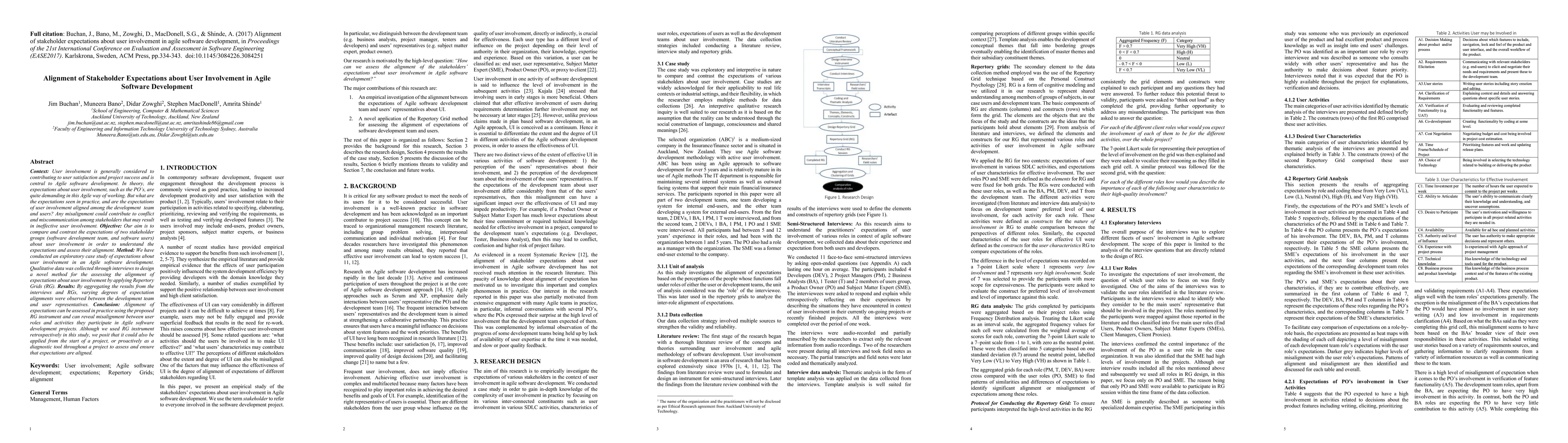 This study explores how stakeholders align their expectations about user involvement in Agile software development, highlighting the need for alignment to ensure effective user involvement and prevent conflict among team members.