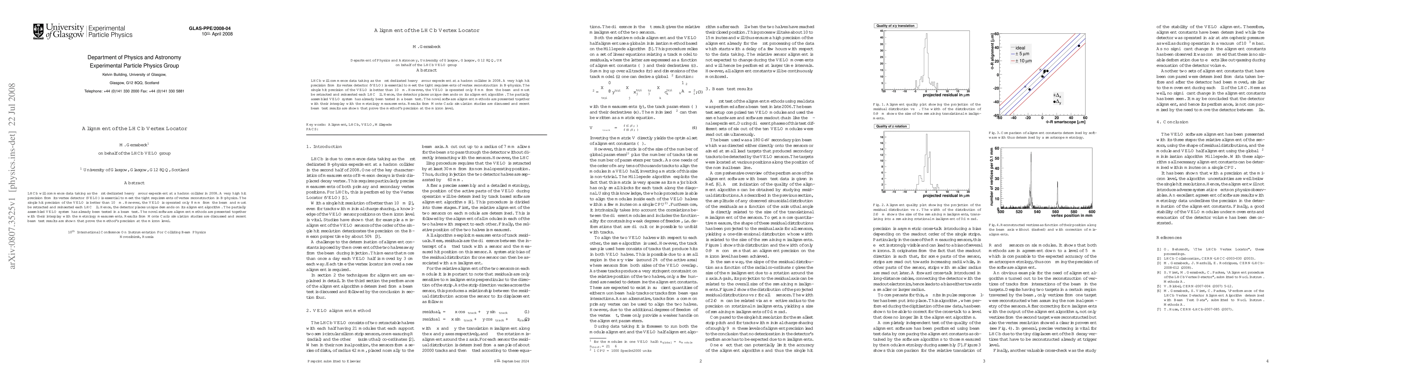 The LHCb Vertex Locator (VELO) alignment method is detailed, crucial for precise B-physics vertex reconstruction. Beam test results validate the micron-level precision of novel software alignment techniques.