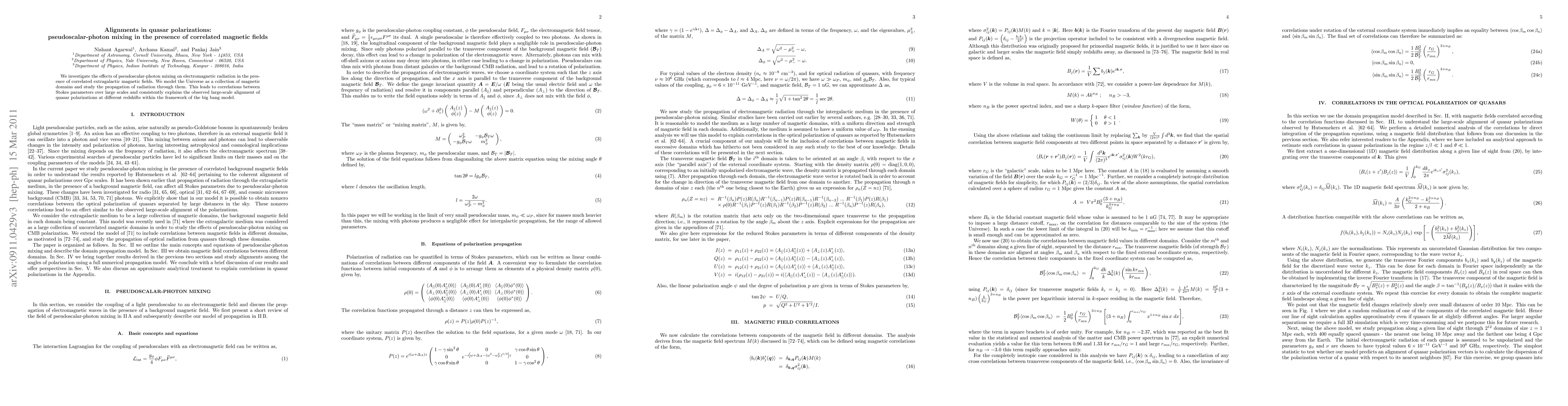 This paper explores how pseudoscalar-photon mixing influences electromagnetic radiation in correlated extragalactic magnetic fields, modeling the universe as magnetic domains. It finds that this mixing explains the observed large-scale alignment of quasar polarizations across different redshifts.