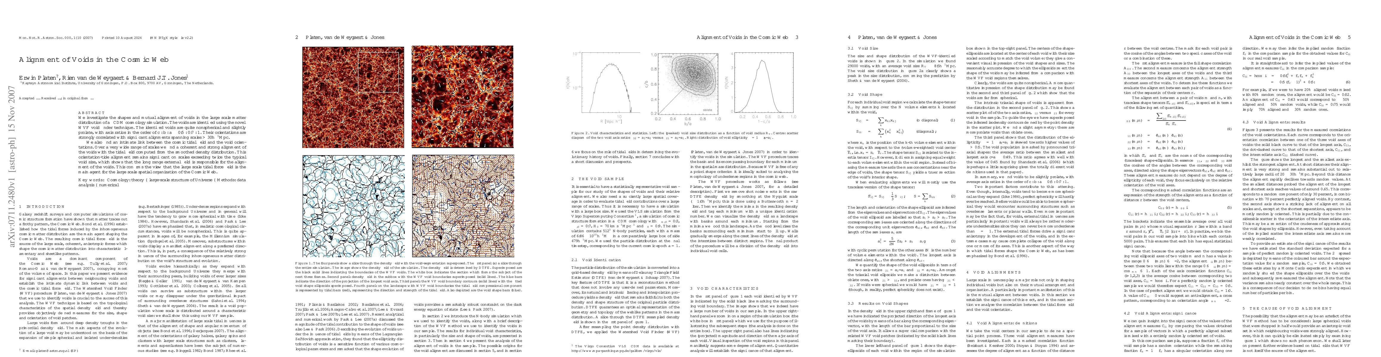 This paper examines the shapes and alignments of voids in a LCDM cosmology simulation, revealing that voids are nonspherical and slightly prolate. The study finds significant alignments of voids with the cosmic tidal field over scales greater than 30 Mpc/h, confirming the tidal field's role in organizing the Cosmic Web.