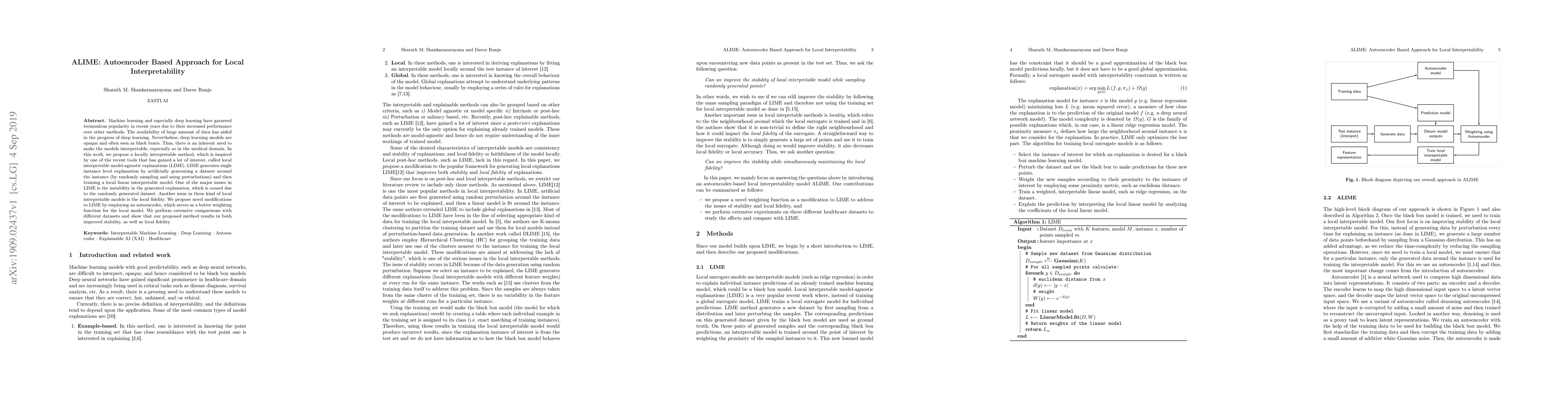 Machine learning and especially deep learning have garneredtremendous popularity in recent years due to their increased performanceover other methods. The availability of large amount of data has aidedin the progress of deep learning. Nevertheless, deep learning models areopaque and often seen as black boxes. Thus, there is an inherent need tomake the models interpretable, especially so in the medical domain. Inthis work, we propose a locally interpretable method, which is inspiredby one of the recent tools that has gained a lot of interest, called localinterpretable model-agnostic explanations (LIME). LIME generates singleinstance level explanation by artificially generating a dataset aroundthe instance (by randomly sampling and using perturbations) and thentraining a local linear interpretable model. One of the major issues inLIME is the instability in the generated explanation, which is caused dueto the randomly generated dataset. Another issue in these kind of localinterpretable models is the local fidelity. We propose novel modificationsto LIME by employing an autoencoder, which serves as a better weightingfunction for the local model. We perform extensive comparisons withdifferent datasets and show that our proposed method results in bothimproved stability, as well as local fidelity.