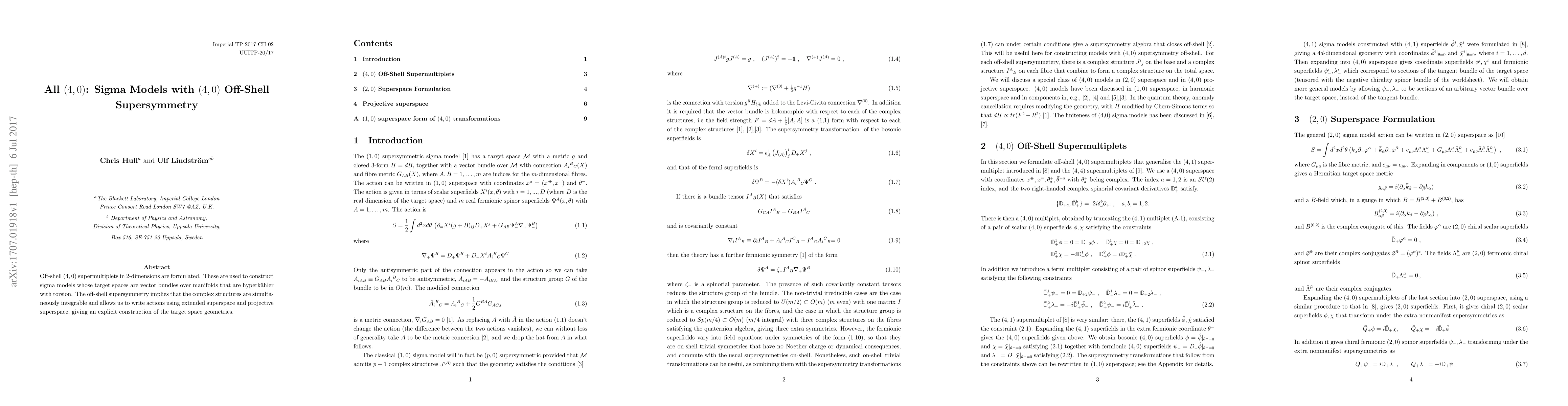 Off-shell $(4,0)$ supermultiplets in 2-dimensions are formulated. These are used to construct sigma models whose target spaces are vector bundles over manifolds that are hyperk\"ahler with torsion. The off-shell supersymmetry implies that the complex structures are simultaneously integrable and allows us to write actions using extended superspace and projective superspace, giving an explicit construction of the target space geometries.