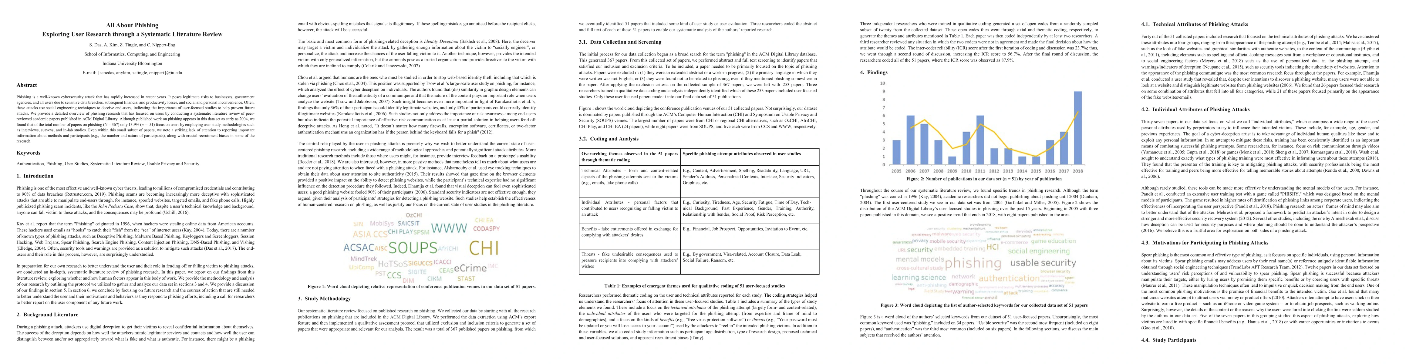 Phishing is a well-known cybersecurity attack that has rapidly increased in recent years. It poses legitimate risks to businesses, government agencies, and all users due to sensitive data breaches, subsequent financial and productivity losses, and social and personal inconvenience. Often, these attacks use social engineering techniques to deceive end-users, indicating the importance of user-focused studies to help prevent future attacks. We provide a detailed overview of phishing research that has focused on users by conducting a systematic literature review of peer-reviewed academic papers published in ACM Digital Library. Although published work on phishing appears in this data set as early as 2004, we found that of the total number of papers on phishing (N = 367) only 13.9% (n = 51) focus on users by employing user study methodologies such as interviews, surveys, and in-lab studies. Even within this small subset of papers, we note a striking lack of attention to reporting important information about methods and participants (e.g., the number and nature of participants), along with crucial recruitment biases in some of the research.