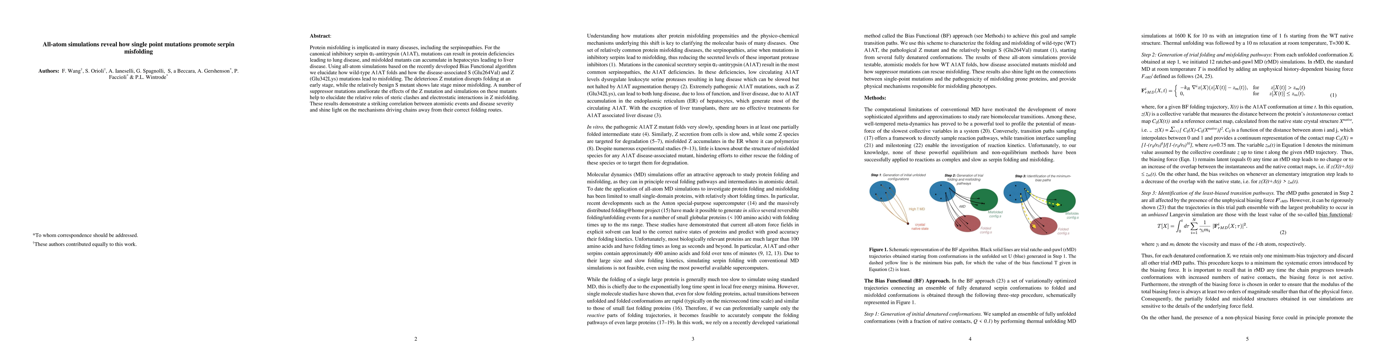 Protein misfolding is implicated in many diseases, including the serpinopathies. For the canonical inhibitory serpin {\alpha}1-antitrypsin (A1AT), mutations can result in protein deficiencies leading to lung disease, and misfolded mutants can accumulate in hepatocytes leading to liver disease. Using all-atom simulations based on the recently developed Bias Functional algorithm we elucidate how wild-type A1AT folds and how the disease-associated S (Glu264Val) and Z (Glu342Lys) mutations lead to misfolding. The deleterious Z mutation disrupts folding at an early stage, while the relatively benign S mutant shows late stage minor misfolding. A number of suppressor mutations ameliorate the effects of the Z mutation and simulations on these mutants help to elucidate the relative roles of steric clashes and electrostatic interactions in Z misfolding. These results demonstrate a striking correlation between atomistic events and disease severity and shine light on the mechanisms driving chains away from their correct folding routes.