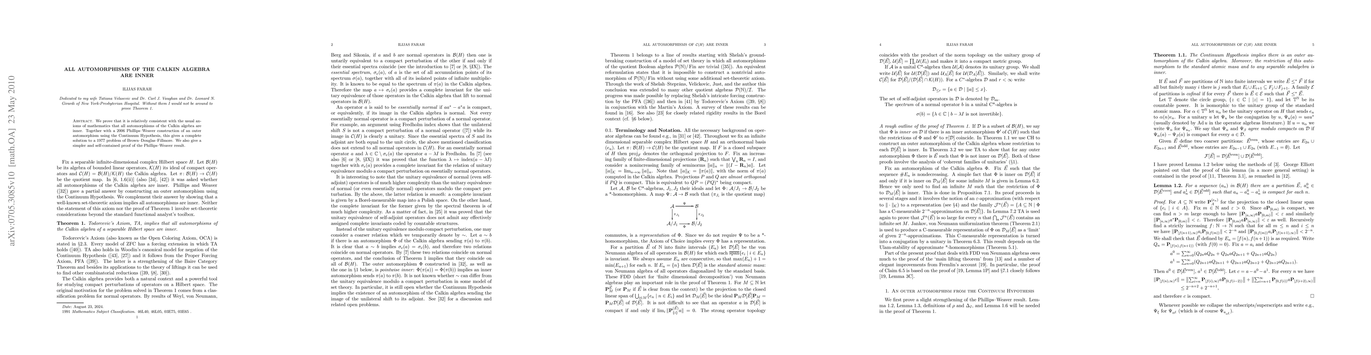 We prove that it is relatively consistent with the usual axioms of mathematics that all automorphisms of the Calkin algebra are inner. Together with a 2006 Phillips--Weaver construction of an outer automorphism using the Continuum Hypothesis, this gives a complete solution to a 1977 problem of Brown-Douglas-Fillmore. We also give a simpler and self-contained proof of the Phillips--Weaver result.