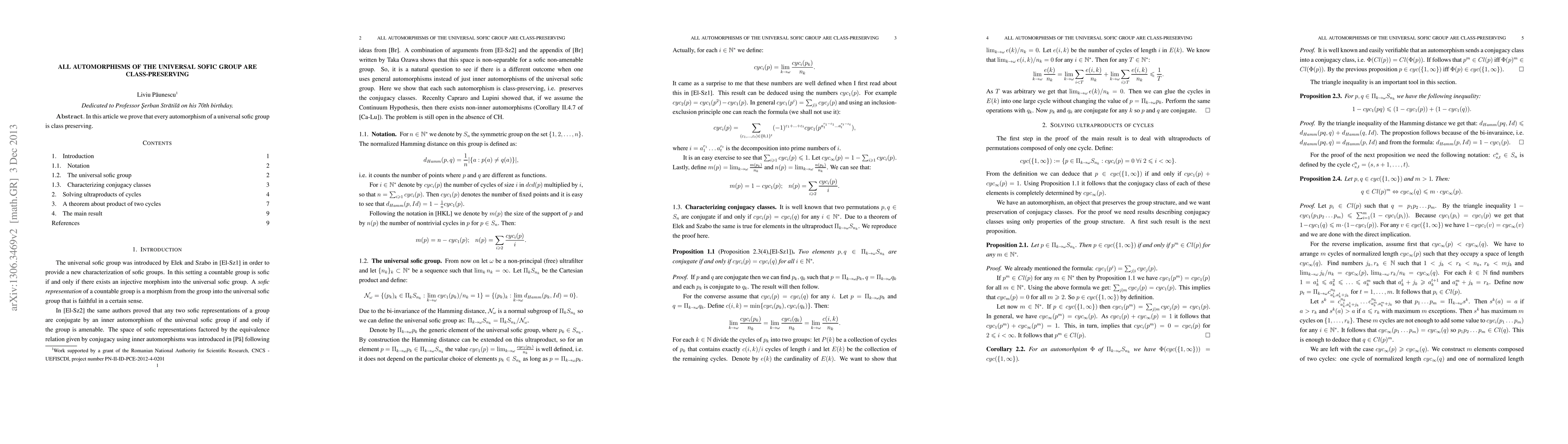 In this article we prove that every automorphism of a universal sofic group is class preserving, i.e. preserves the conjugacy classes