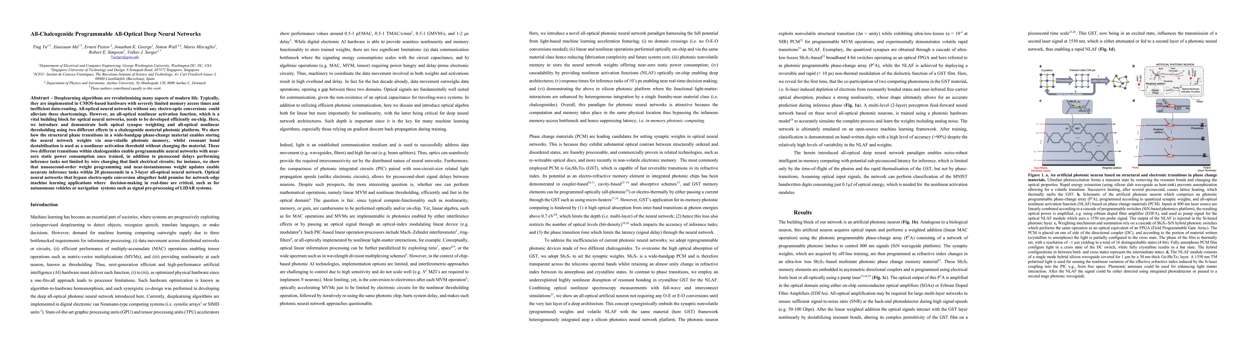 This paper presents an all-chalcogenide programmable all-optical deep neural network that leverages phase-change material for non-volatile photonic memory and resonant bond destabilisation for efficient on-chip nonlinear activation. The proposed system achieves near-zero static power consumption and picosecond-order inference speeds, promising significant advancements for real-time machine learning applications.