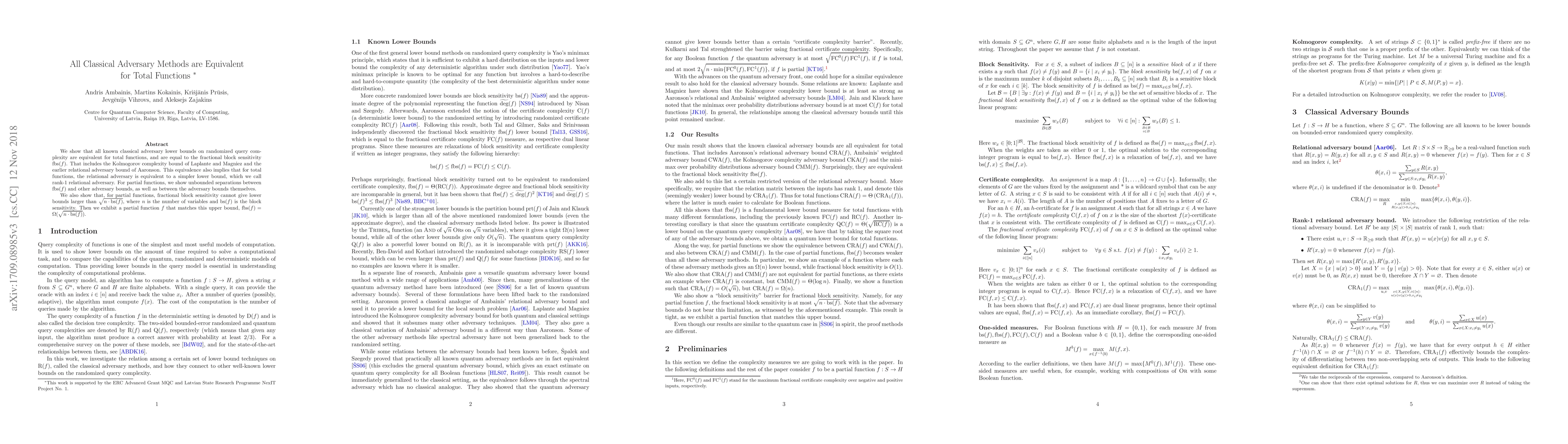 This paper demonstrates that all classical adversary methods for lower bounds on randomized query complexity are equivalent for total functions, equating to fractional block sensitivity. For partial functions, it shows significant separations between these bounds and establishes an upper limit for fractional block sensitivity.