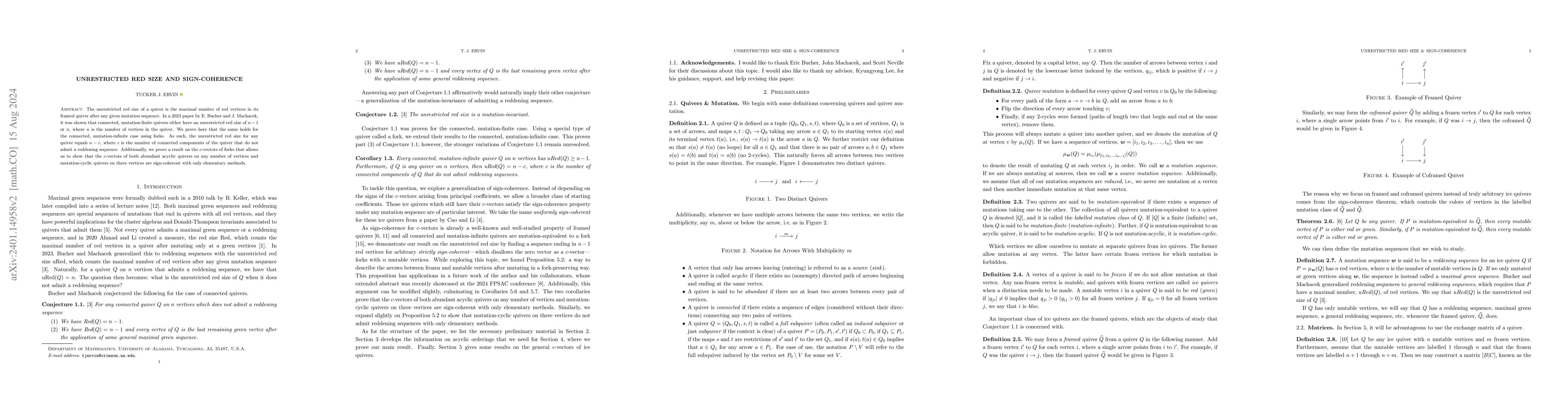 This paper proves that the unrestricted red size of any connected quiver, whether mutation-finite or mutation-infinite, is either $n-1$ or $n$, where $n$ is the number of vertices. It extends the findings of Bucher and Machacek to mutation-infinite cases using forks.