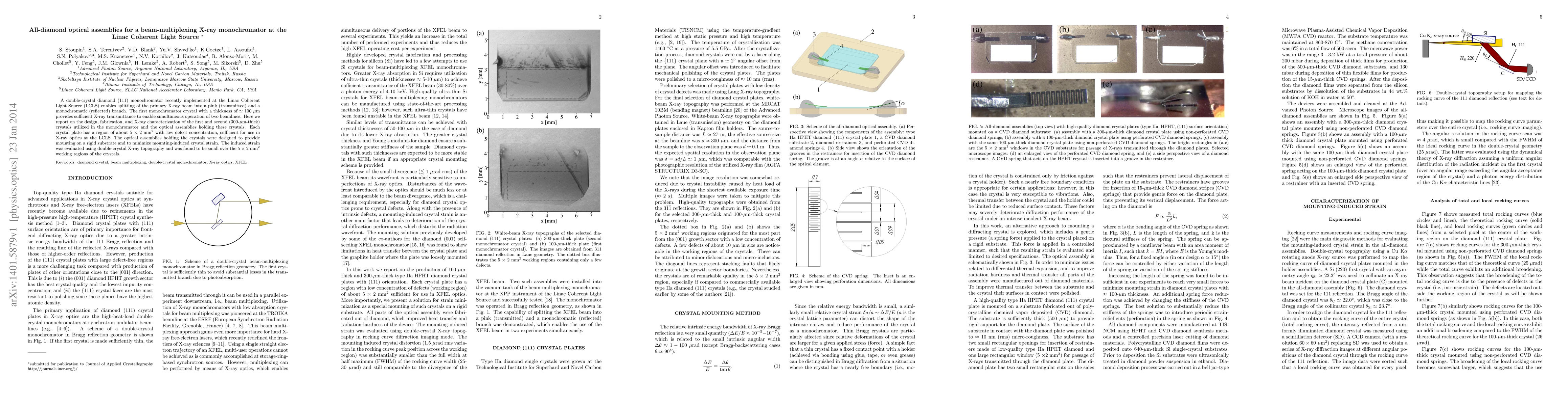 This paper details the design and fabrication of diamond crystals for a beam-multiplexing X-ray monochromator at the LCLS, emphasizing the low defect concentration and minimal induced strain in the optical assemblies. The study highlights the successful implementation of double-crystal diamond monochromators for efficient X-ray beam splitting.
