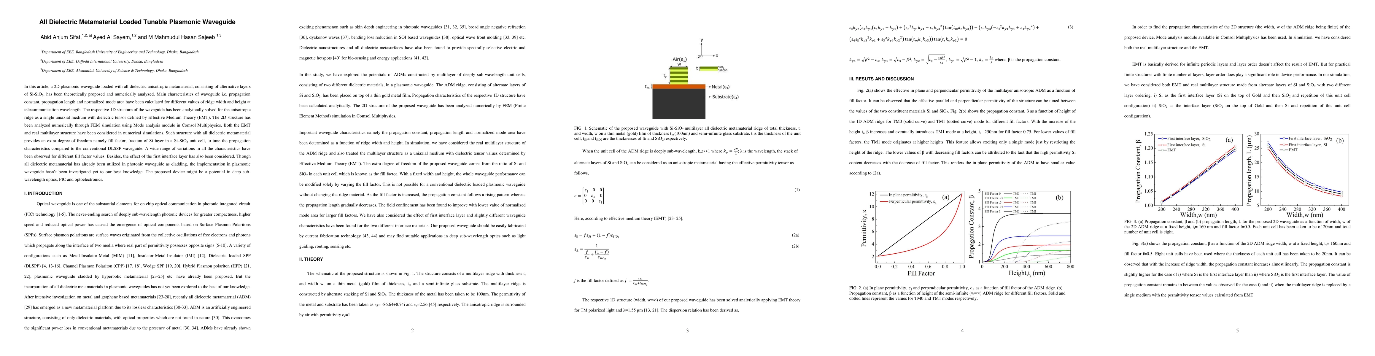 This paper proposes a 2D plasmonic waveguide loaded with an all dielectric anisotropic metamaterial made of Si-SiO2 layers. The study calculates waveguide characteristics and finds significant variations in propagation properties with different fill factors, offering potential for deep sub-wavelength optics and optoelectronics.