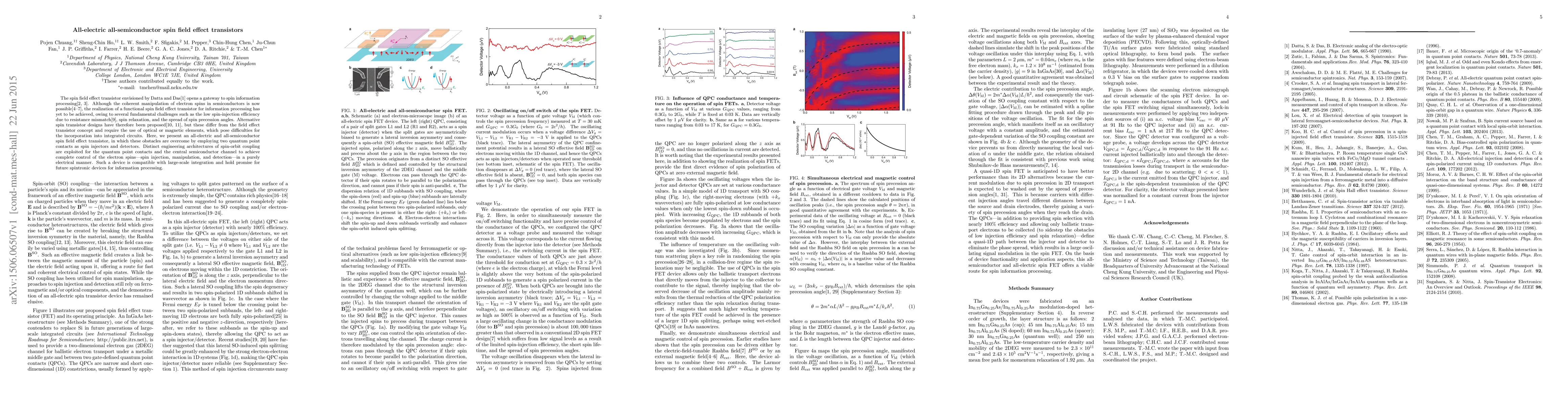 This paper introduces an all-electric, all-semiconductor spin field effect transistor overcoming challenges like spin-injection efficiency and spin relaxation, using quantum point contacts for spin control, promising integration in future spintronic devices for information processing.