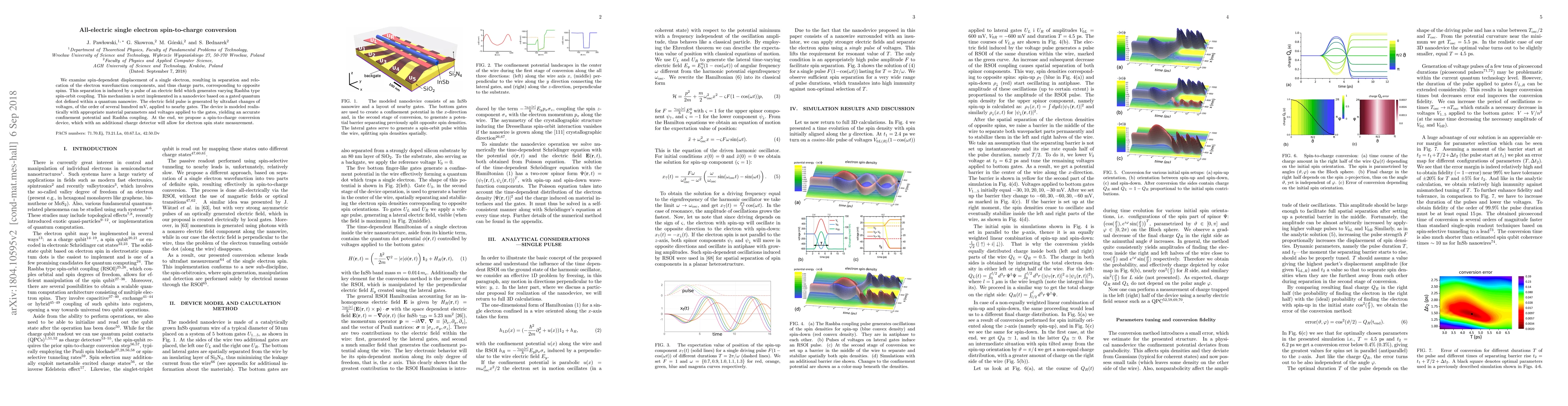 This research explores a method for converting electron spin states to charge states using a nanodevice based on a quantum dot within a quantum nanowire. An electric field pulse induces spin-orbit coupling, separating spin-dependent electron wavefunction components, enabling precise measurement of electron spin states via charge detection.