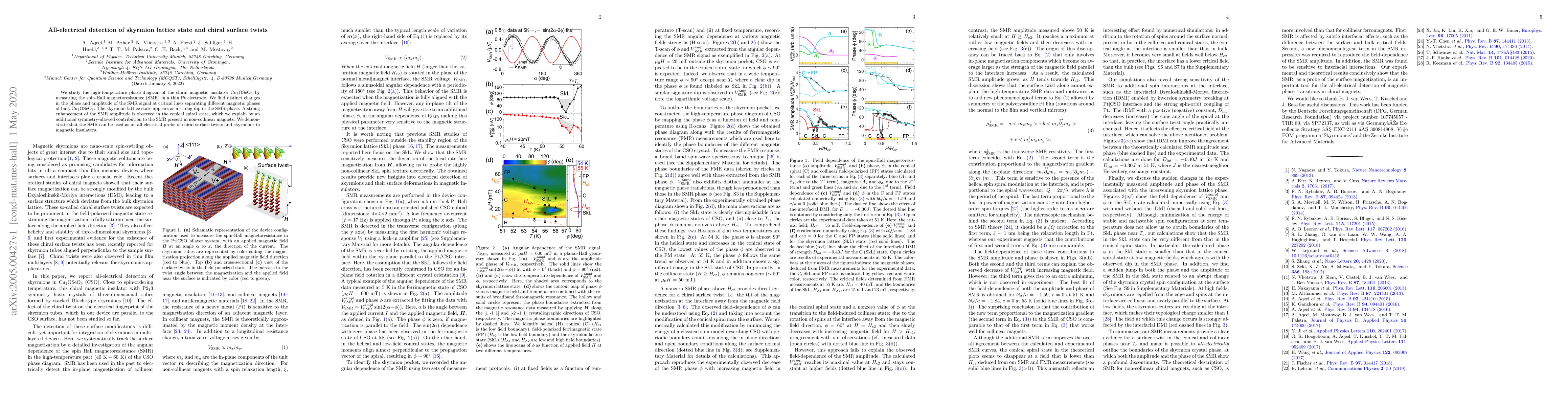 We study the high-temperature phase diagram of the chiral magnetic insulator Cu$_2$OSeO$_3$ by measuring the spin-Hall magnetoresistance (SMR) in a thin Pt electrode. We find distinct changes in the phase and amplitude of the SMR signal at critical lines separating different magnetic phases of bulk Cu$_2$OSeO$_3$. The skyrmion lattice state appears as a strong dip in the SMR phase. A strong enhancement of the SMR amplitude is observed in the conical spiral state, which we explain by an additional symmetry-allowed contribution to the SMR present in non-collinear magnets. We demonstrate that the SMR can be used as an all-electrical probe of chiral surface twists and skyrmions in magnetic insulators.