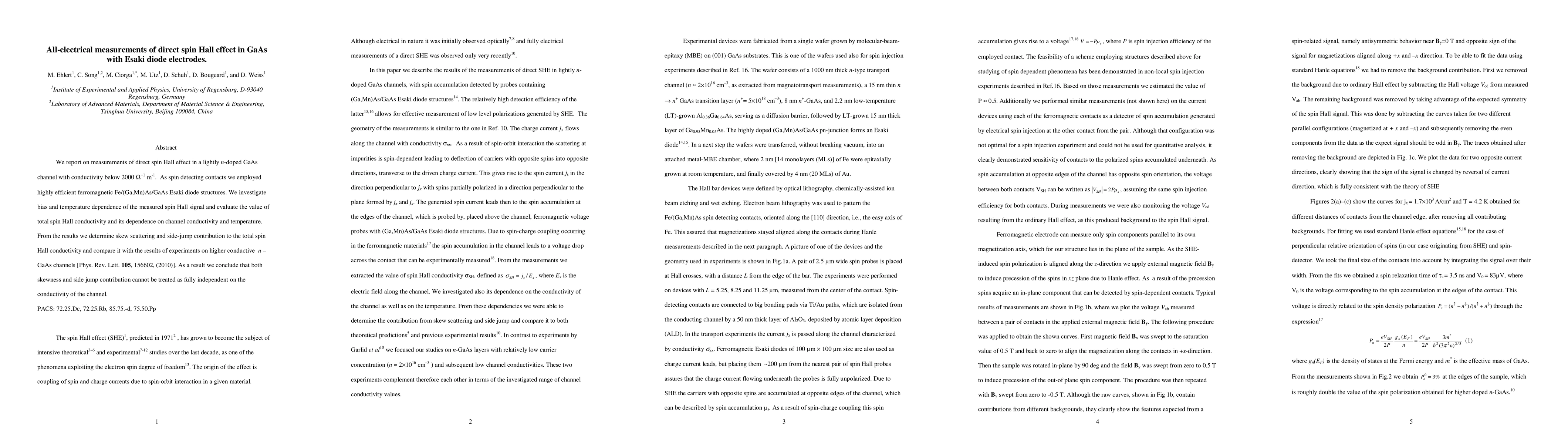 This study measures the direct spin Hall effect in lightly n-doped GaAs using Fe/(Ga,Mn)As/GaAs Esaki diodes, revealing bias and temperature dependencies. It concludes that skew scattering and side jump contributions to spin Hall conductivity are influenced by channel conductivity.