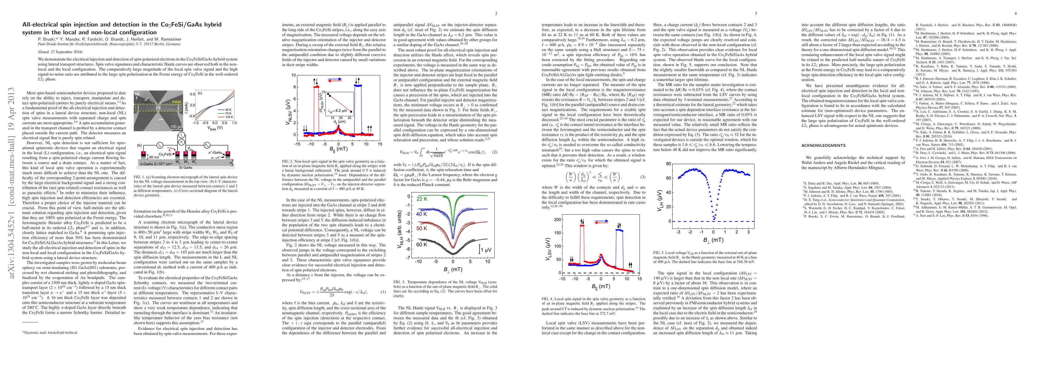 We demonstrate the electrical injection and detection of spin-polarized electrons in the Co2FeSi/GaAs hybrid system using lateral transport structures. Spin valve signatures and characteristic Hanle curves are observed both in the nonlocal and the local configuration. The comparatively large magnitude of the local spin valve signal and the high signal-to-noise ratio are attributed to the large spin polarization at the Fermi energy of Co2FeSi in the well-ordered L21 phase.