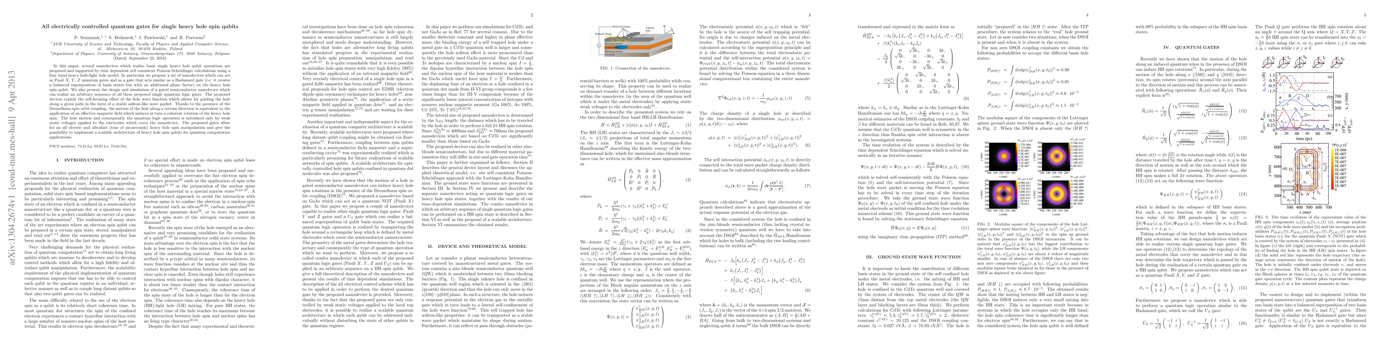 This paper proposes nanodevices for electrically controlled quantum gates on single heavy hole spin qubits, utilizing weak static voltages to manipulate the spin through self-focusing effects and Dresselhaus spin-orbit coupling. The devices enable ultrafast, all-electric operations for scalable quantum computing applications.