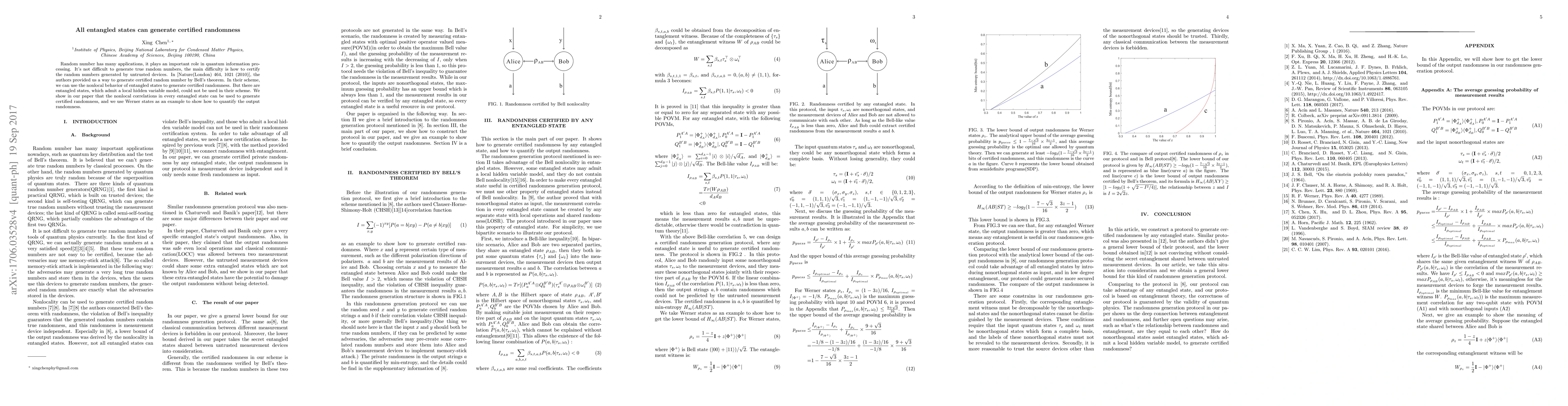 This paper demonstrates that all entangled quantum states can be utilized to generate certified randomness, overcoming limitations of previous methods that relied on nonlocal correlations. It shows that even entangled states previously thought unsuitable can now be used, exemplified by Werner states, to quantify the randomness output.