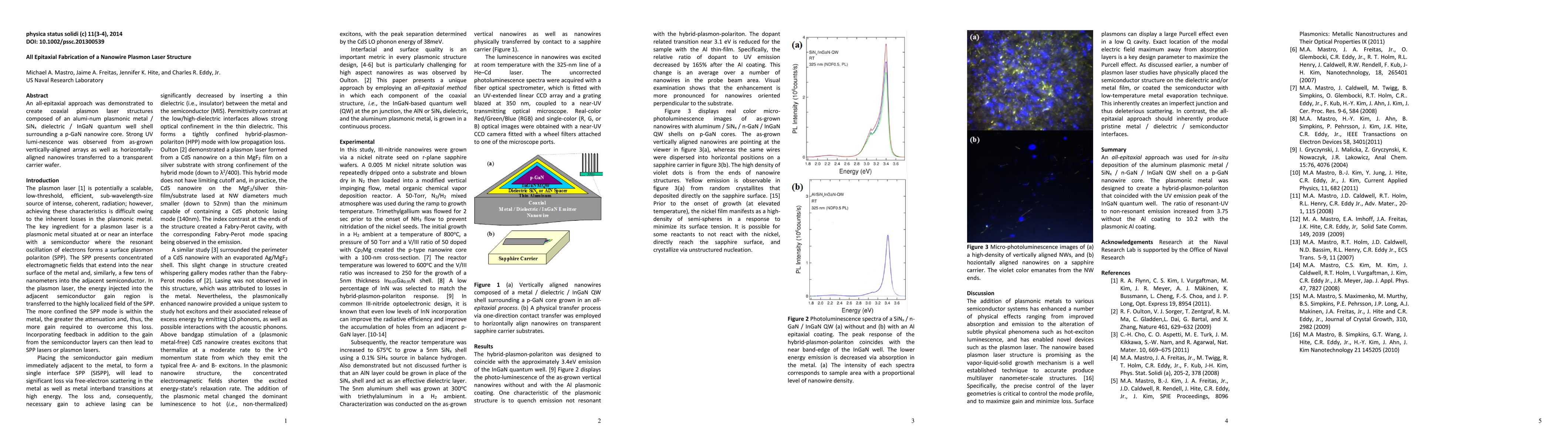 Researchers created coaxial plasmon laser structures using an all-epitaxial approach, surrounding a p-GaN nanowire core with a metal-dielectric quantum well shell, demonstrating strong UV luminescence in both vertically-aligned and horizontally-aligned arrays.