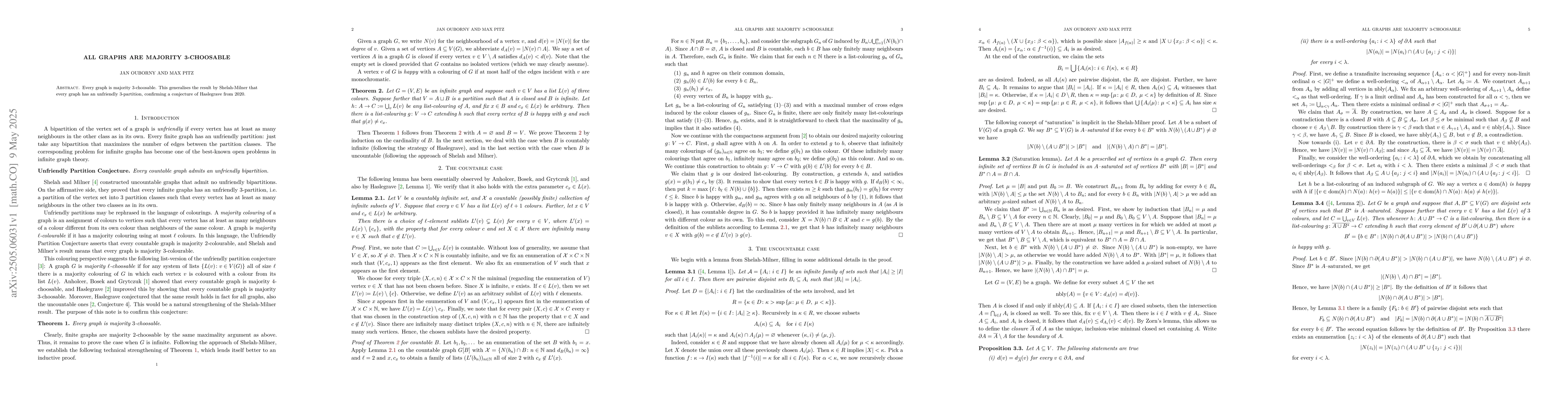 The paper uses graph theory concepts to prove that every graph is majority 3-choosable, generalizing Shelah-Milner's result on unfriendly 3-partitions.